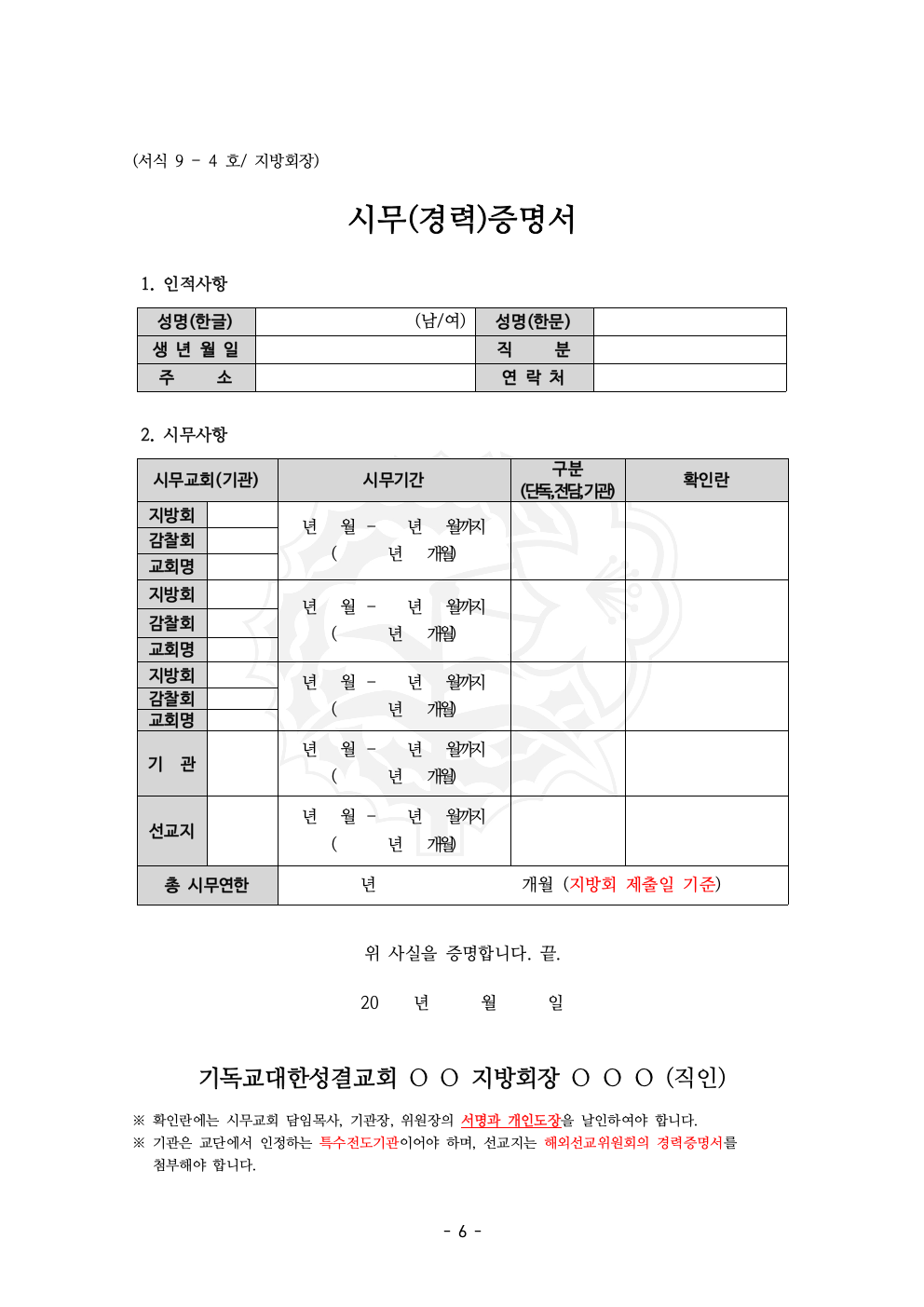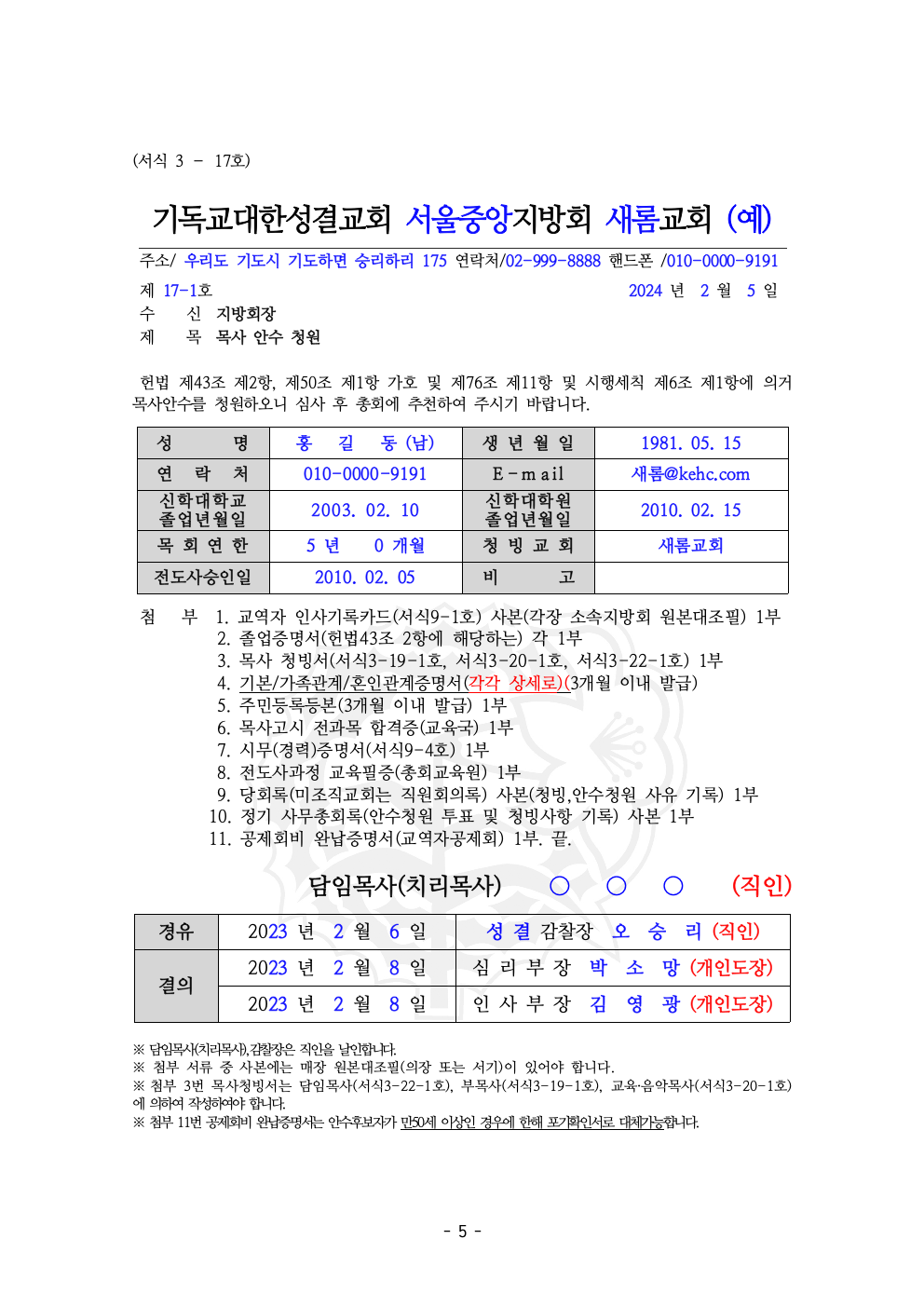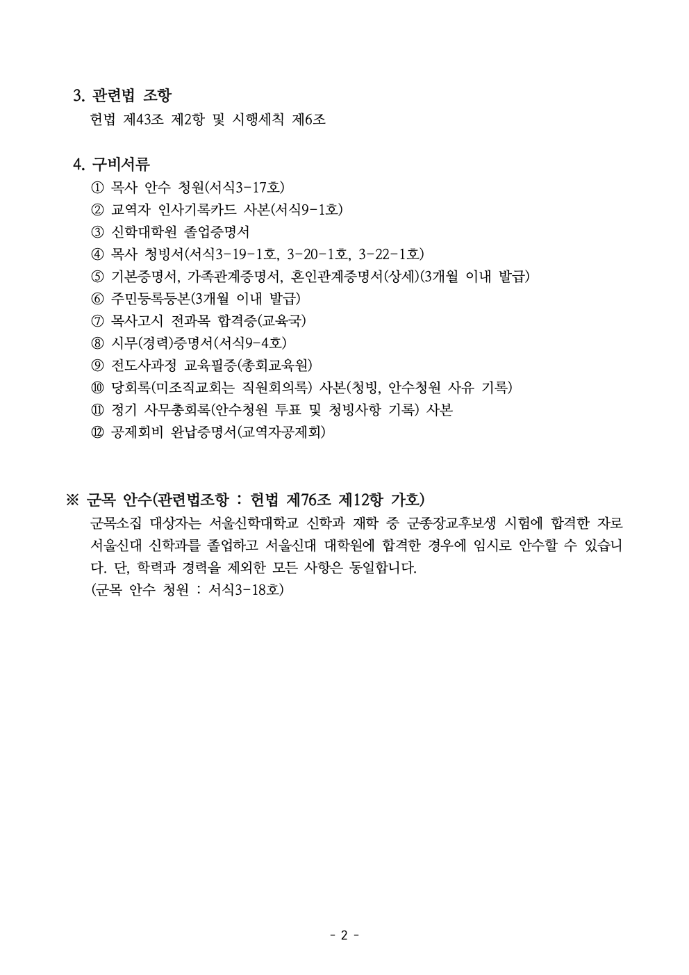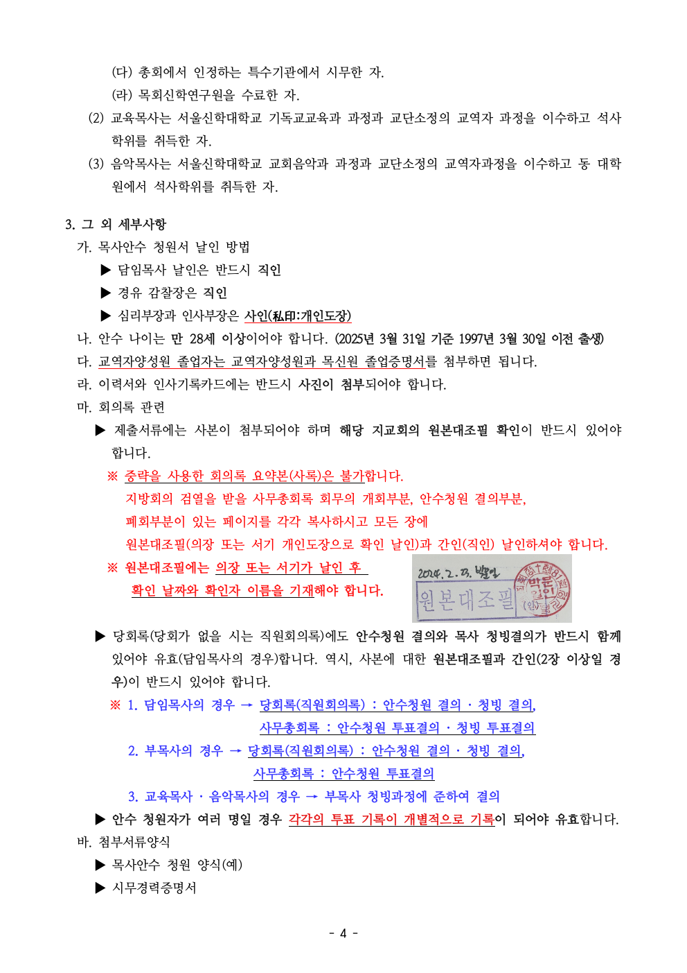 2025년도 목사안수후보자 청원서류 지침 (2025년 기준)